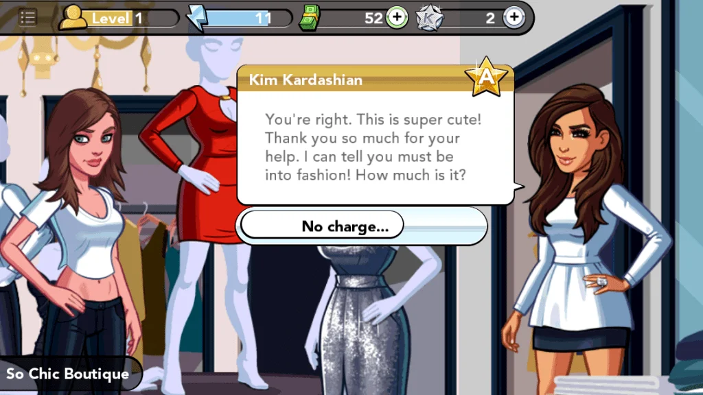 In the case of Kim Kardashian: Hollywood, the game begins innocently enough. The Kim Kardashian game is a classic role-playing game where players take the part of an up and coming Hollywood celebrity determined to climb the ranks up to “A-List” status. To get there, players must pass through lower levels of stardom on the E, D, C, and B-Lists. Moving through these levels requires completing tasks like posing for magazines, going on dates, and as best as I can tell, shoplifting for Kim Kardashian.